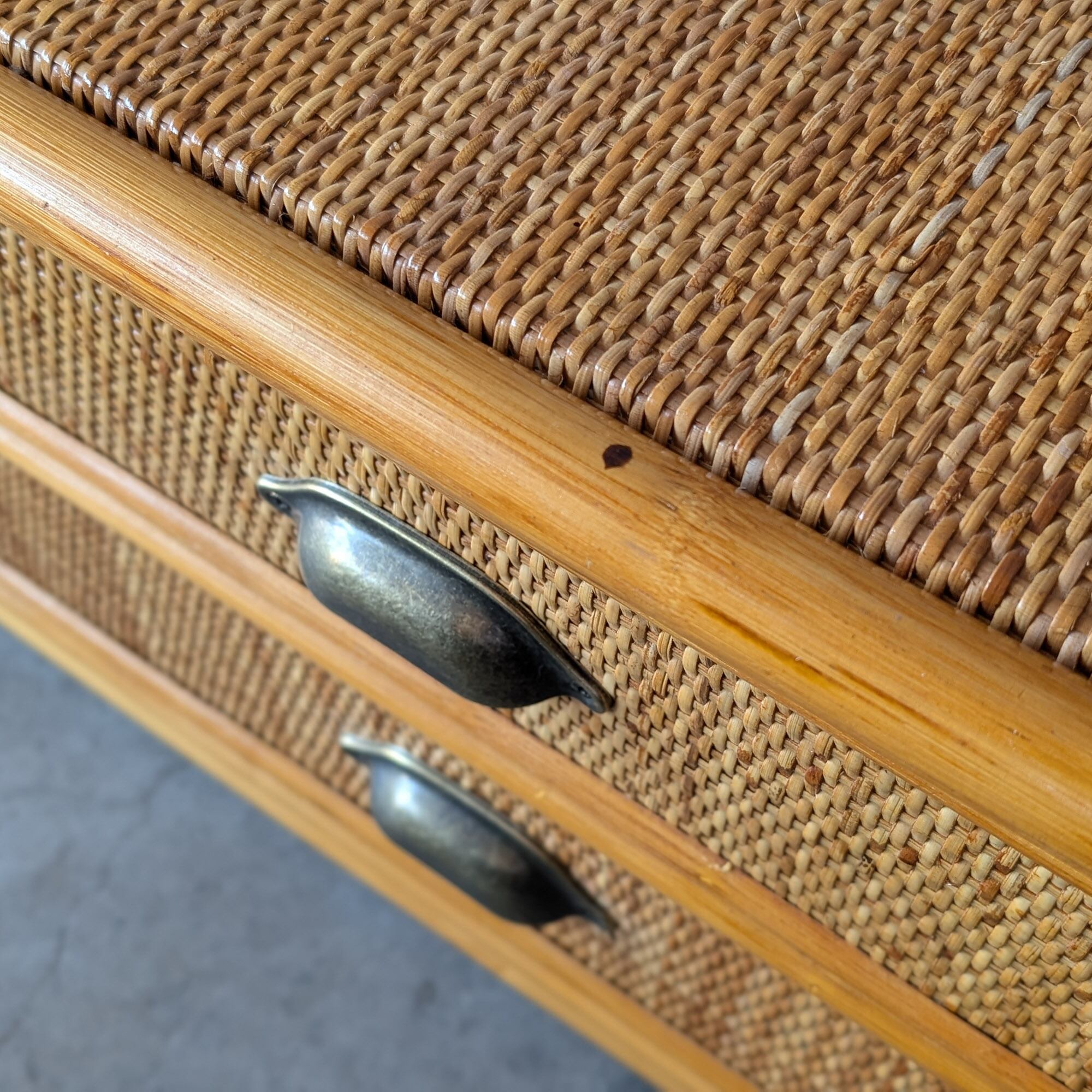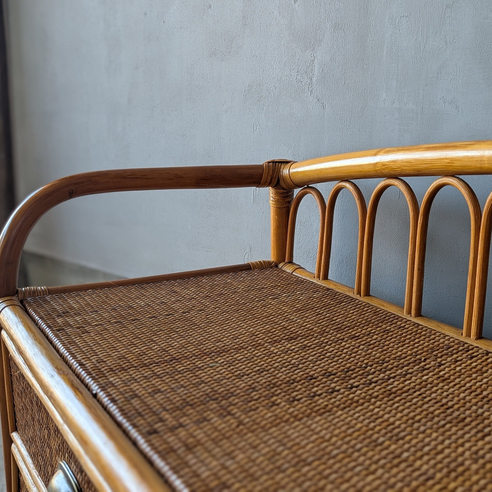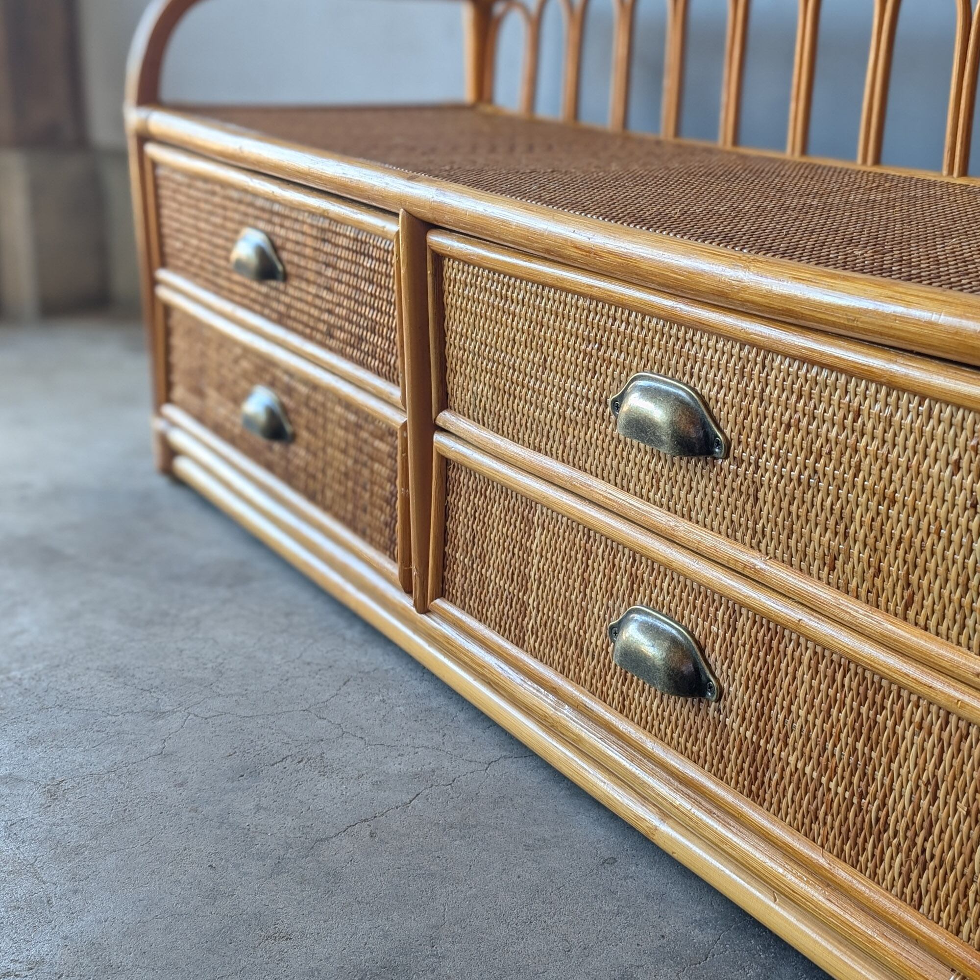 【送料込み】ヴィンテージ・ラタンの小さめローチェスト ローボード キャビネット