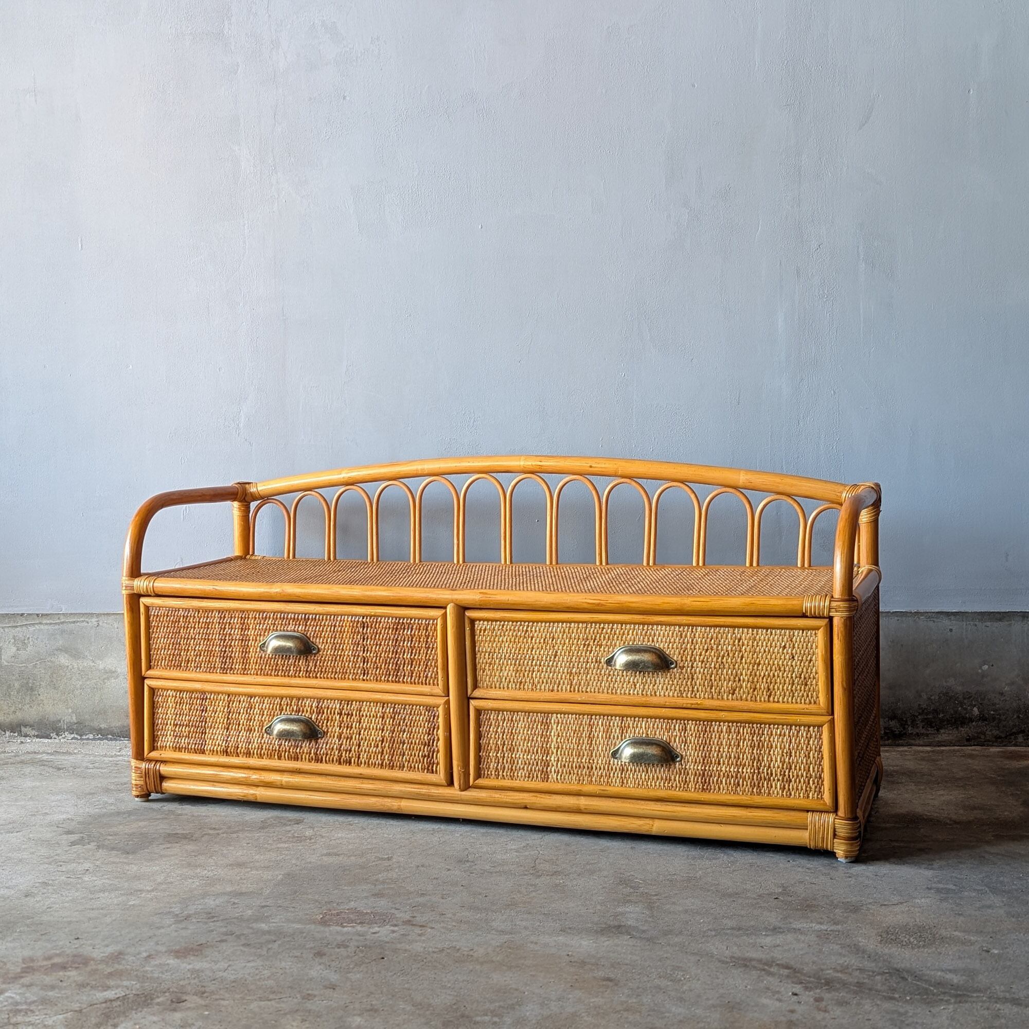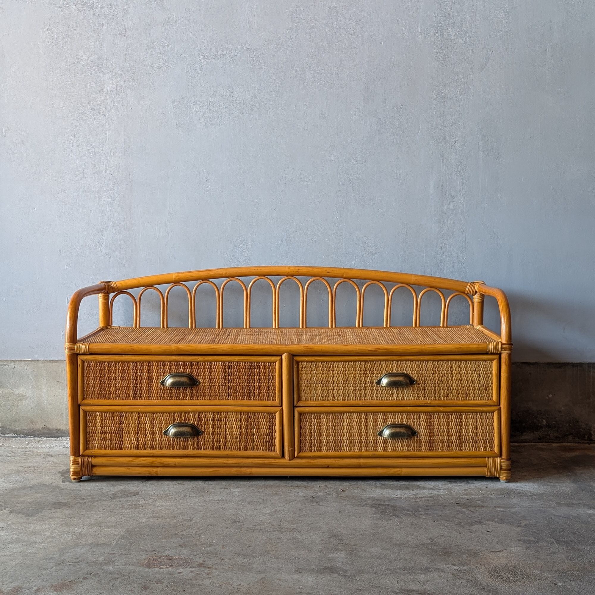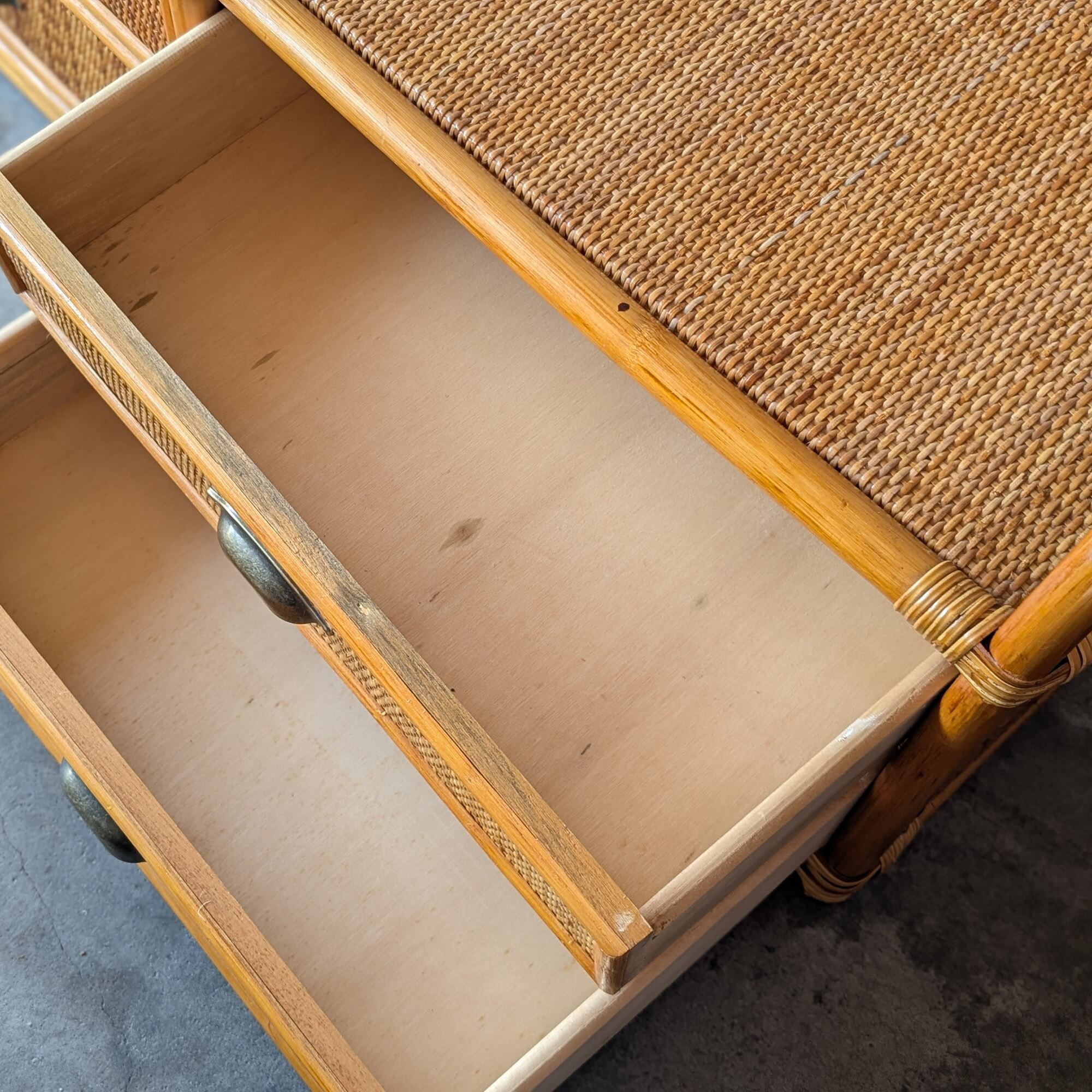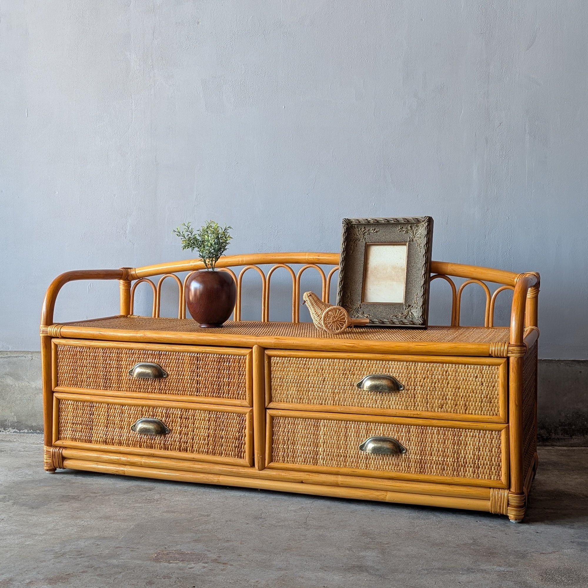 【送料込み】ヴィンテージ・ラタンの小さめローチェスト ローボード キャビネット