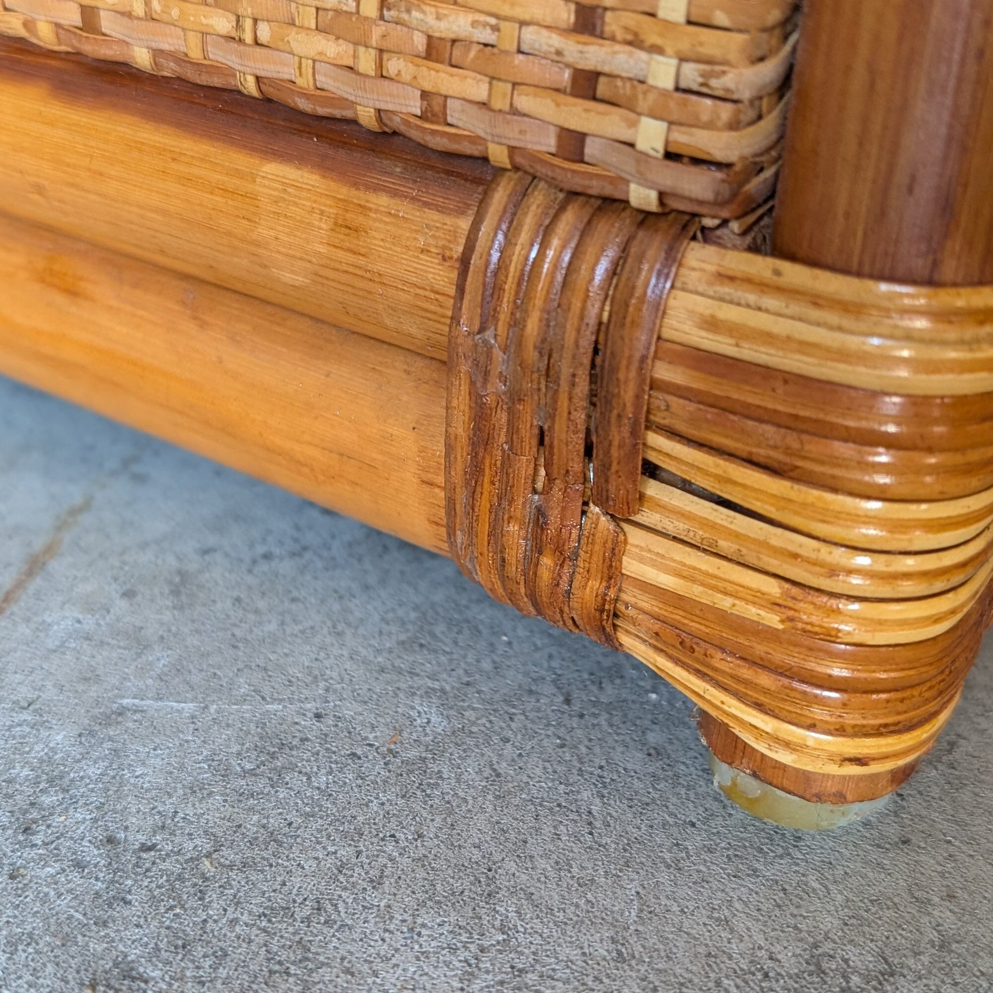 経年による細かな擦り傷や汚れ、ラタンの、褪色などがありますが、使用に問題のある所はありません。