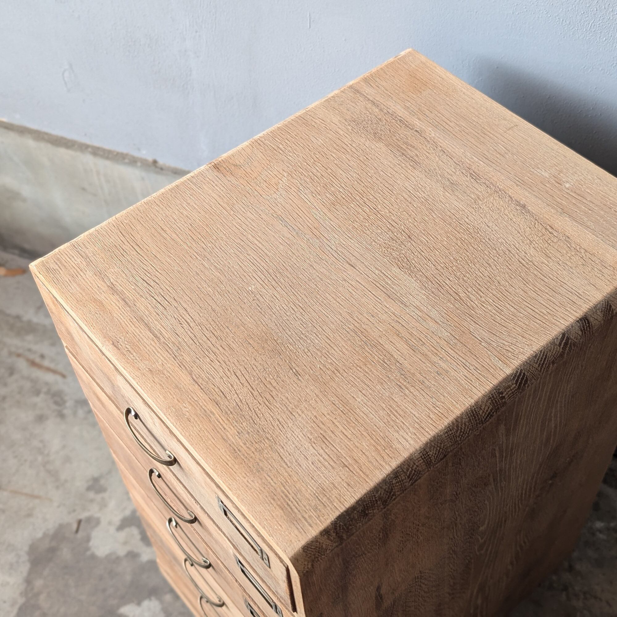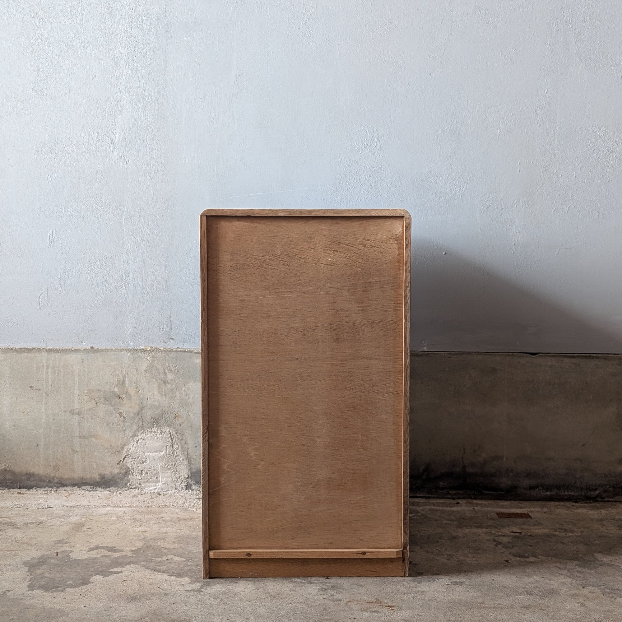 昭和中期頃に作られたと思われるとても雰囲気の良い小抽斗です。主材にはナラのような木材が使用してされています。
