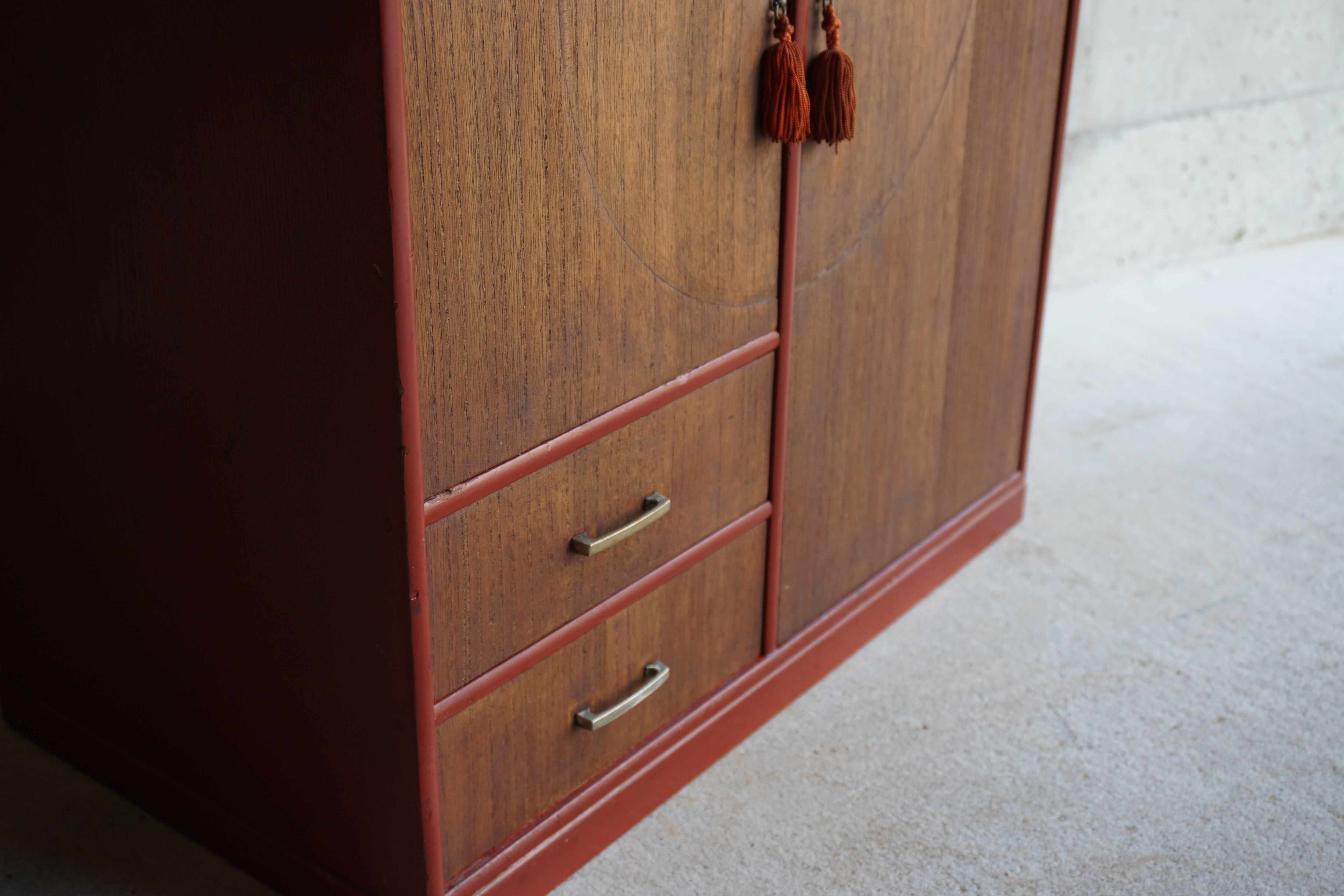 かなり古いものになりますが、経年の割に朱塗りの部分の状態は比較的良い方かと思います。扉部分は植物性オイル塗料で再塗装してあります。