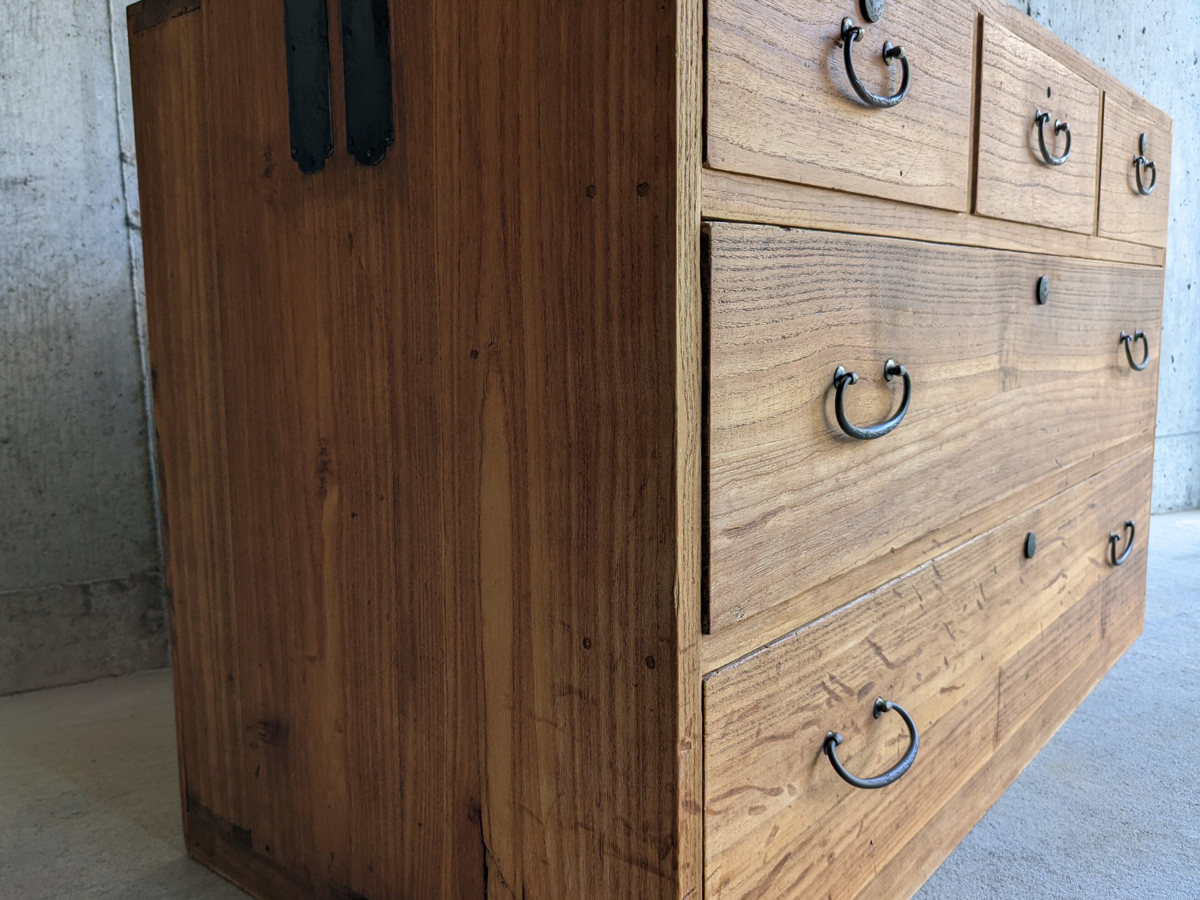 昭和中期頃のものと思われる桐箪笥です。小さな引き出しが三杯付いているので使い勝手も良さそうです。