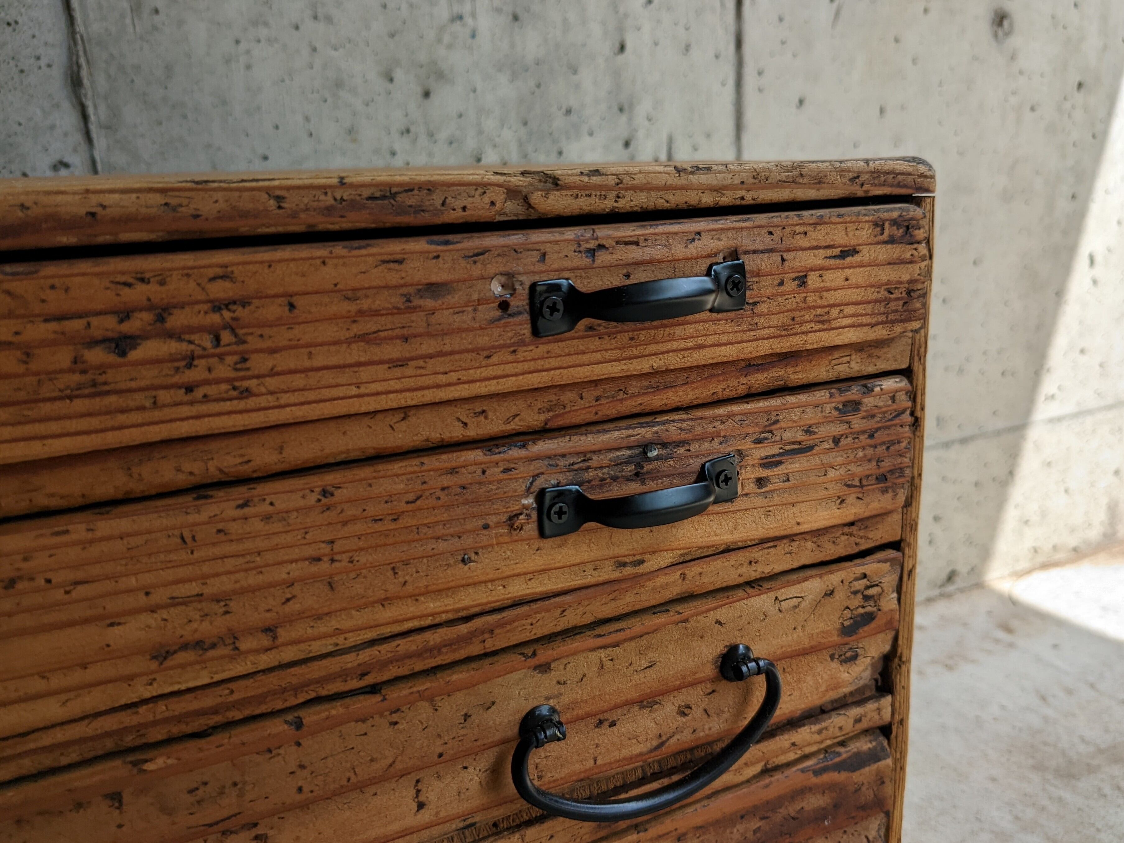 大正時代の印刷所にあった書類棚です。印刷インクの汚れや傷み具合が良い雰囲気になっています。