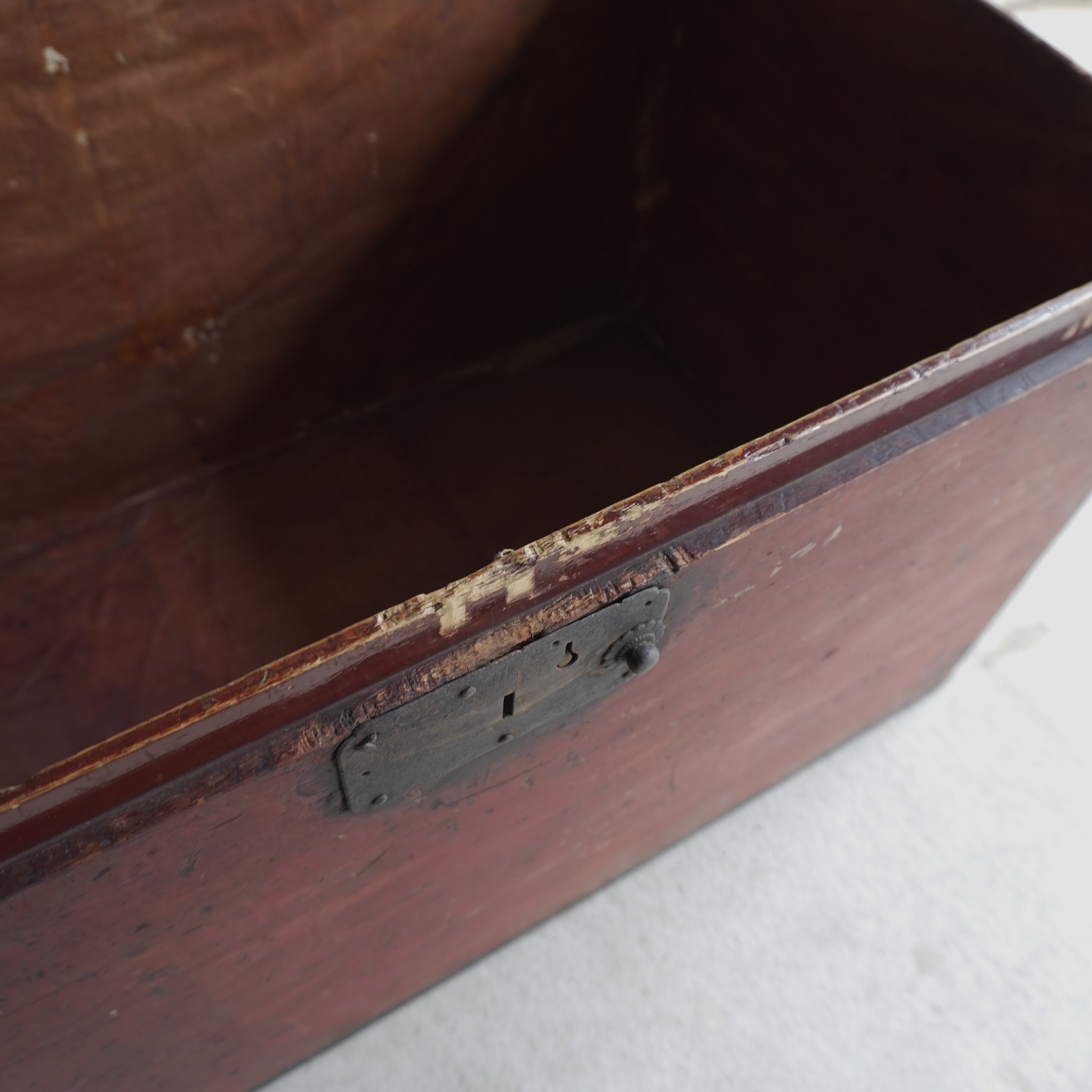 老舗の和菓子屋さんにあった小さめな長持です。大正から昭和初期頃にかけて作られたと思われます。約100年は経年しているのではないでしょうか。