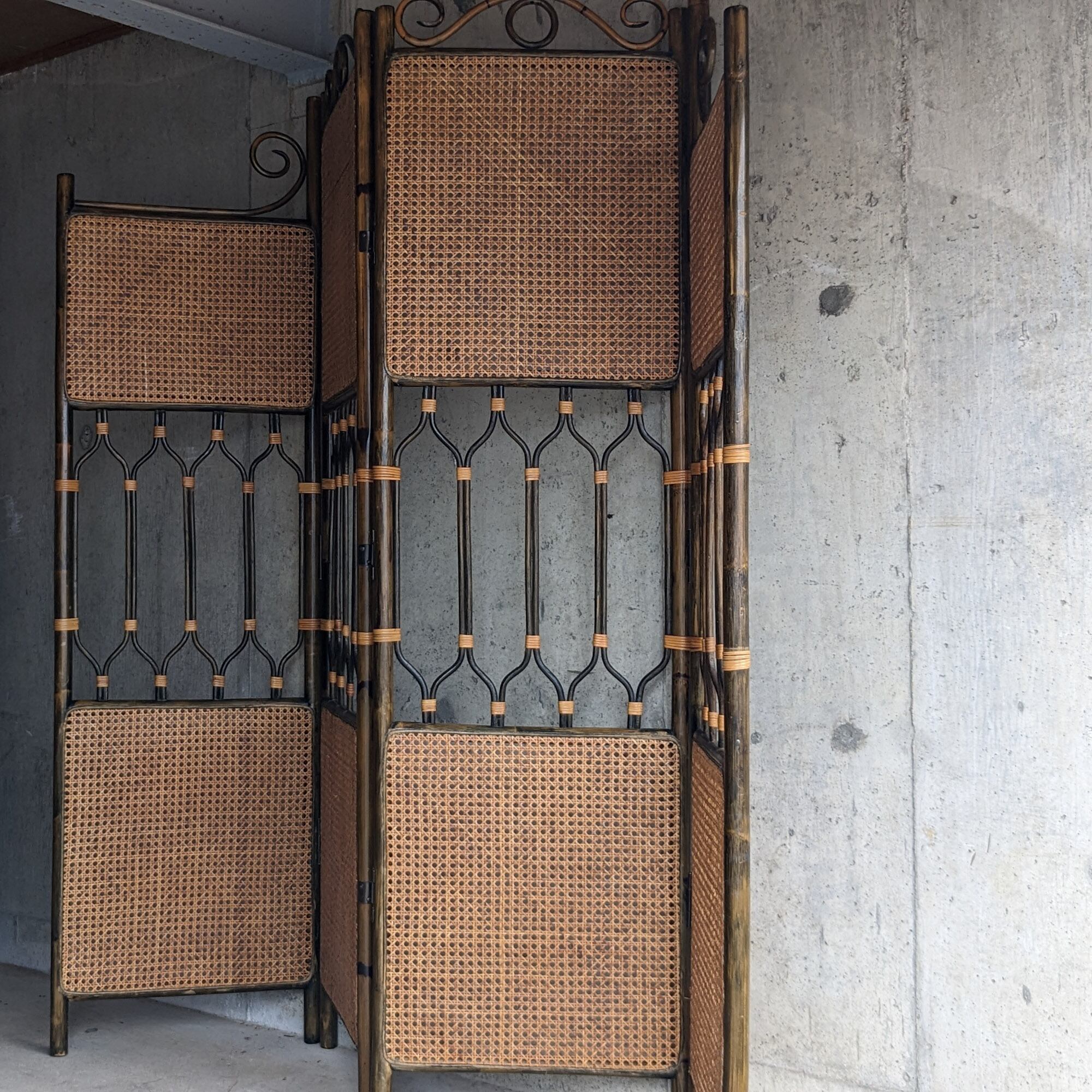 南の島に似合いそうなアンティーク調のラタンの衝立てです。比較的に新しいもので10年くらい経年している感じです。