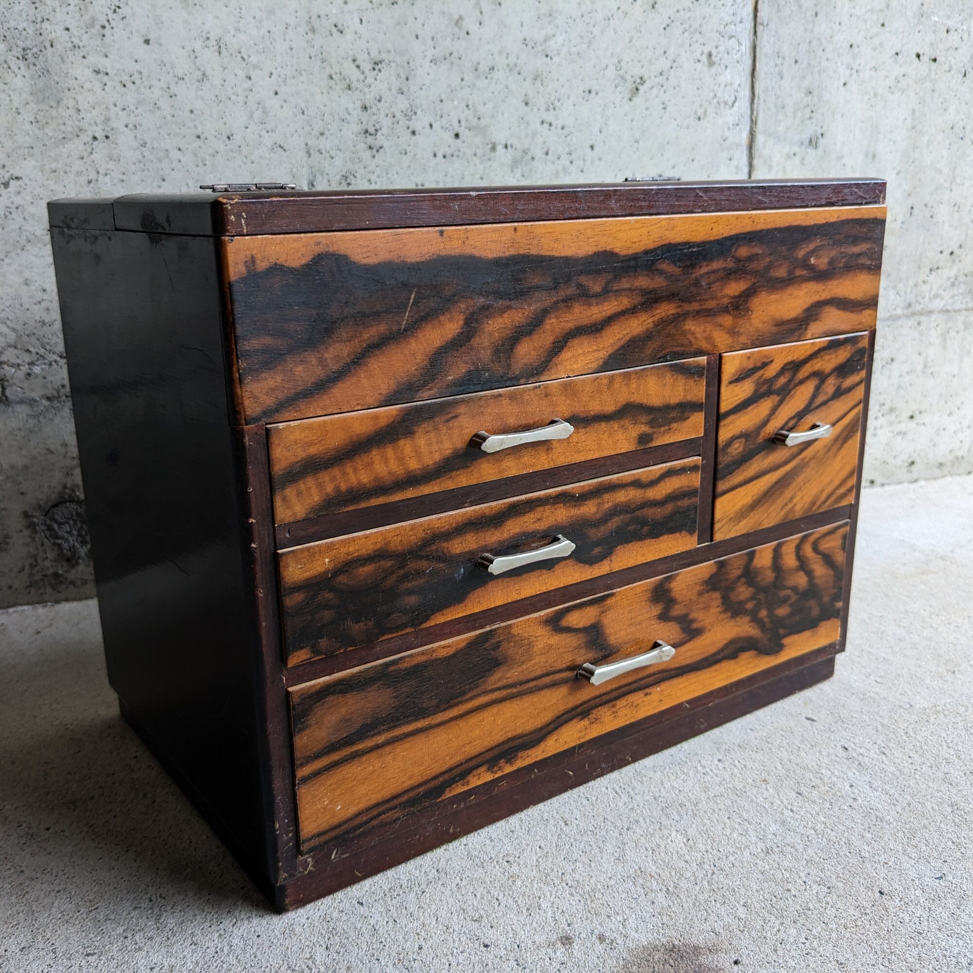 黒柿の突き板が素敵な昭和初期頃の針箱です。