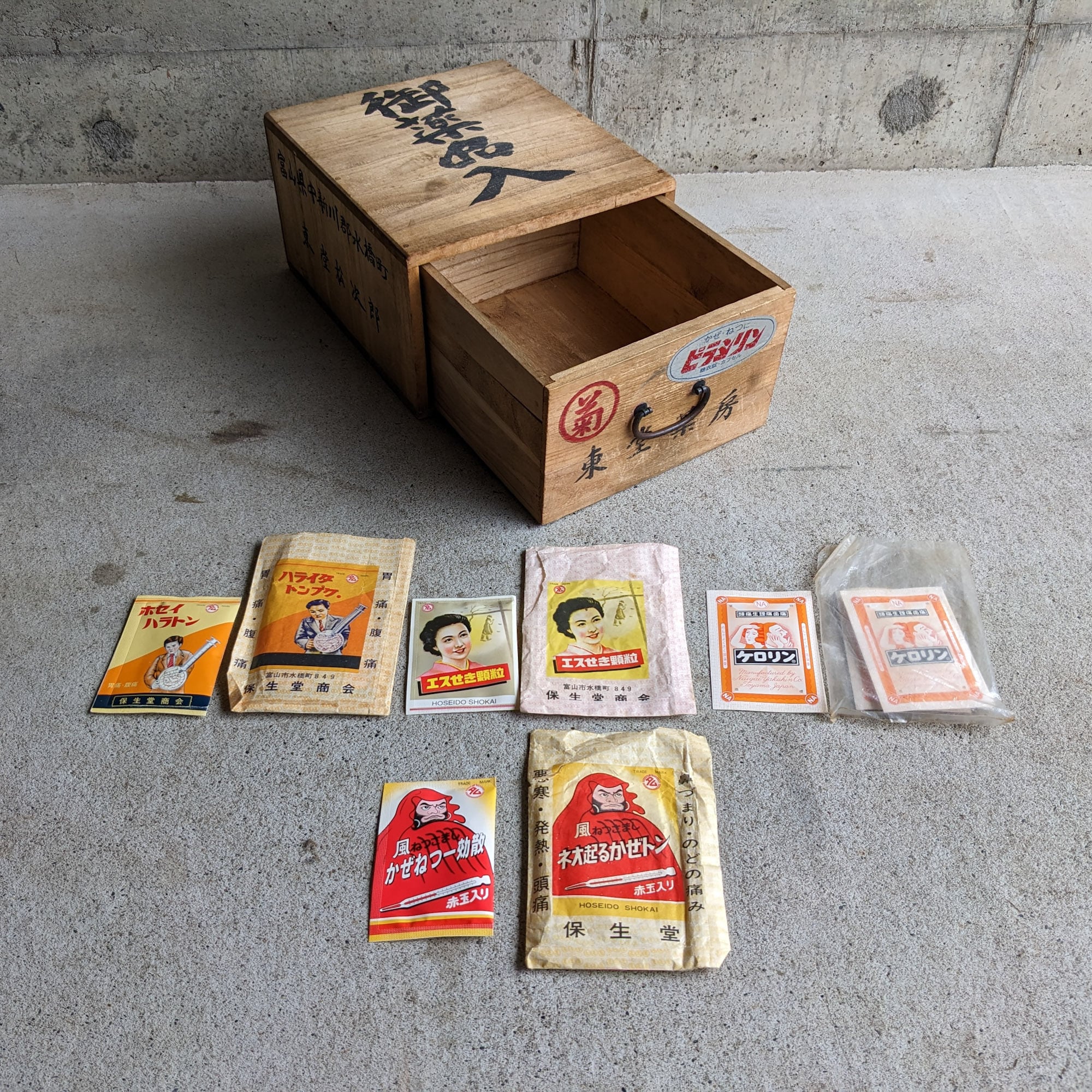 昭和初期頃の置き薬の薬箱(当時のお薬付き)