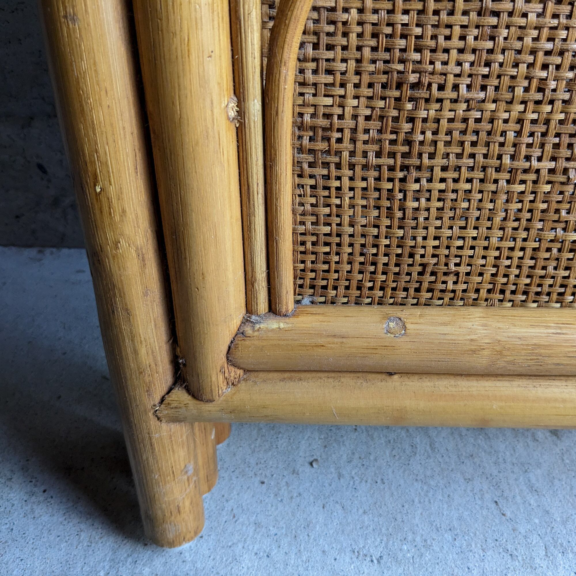 編込み風のデザインが可愛らしいラタンの3連衝立てです。昭和後期〜平成全期ぐらいのものかと思われます。