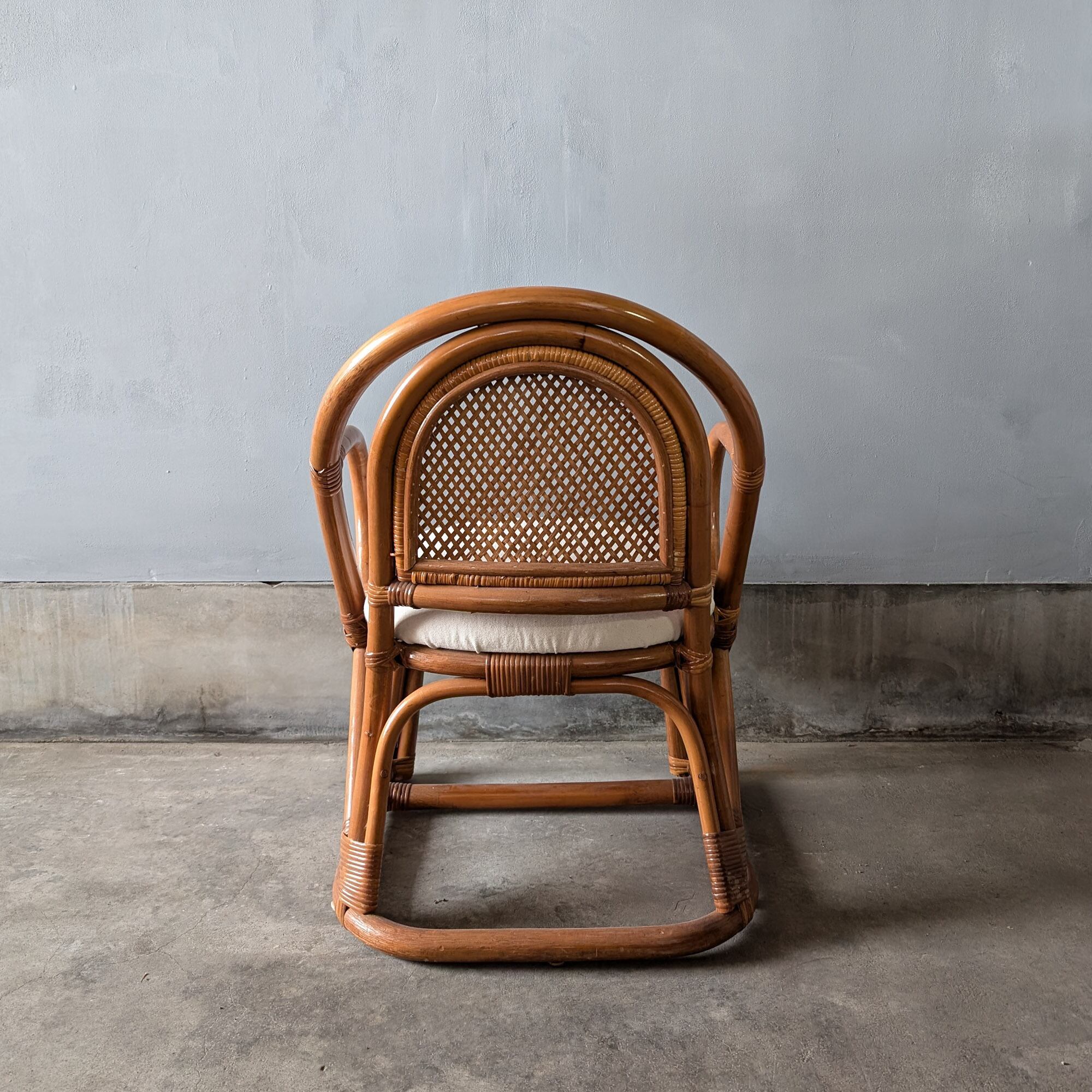 平成期に作られた小ぶりなラタンチェアです。ラタン部分は経年変化により素敵な色合いになっています。
