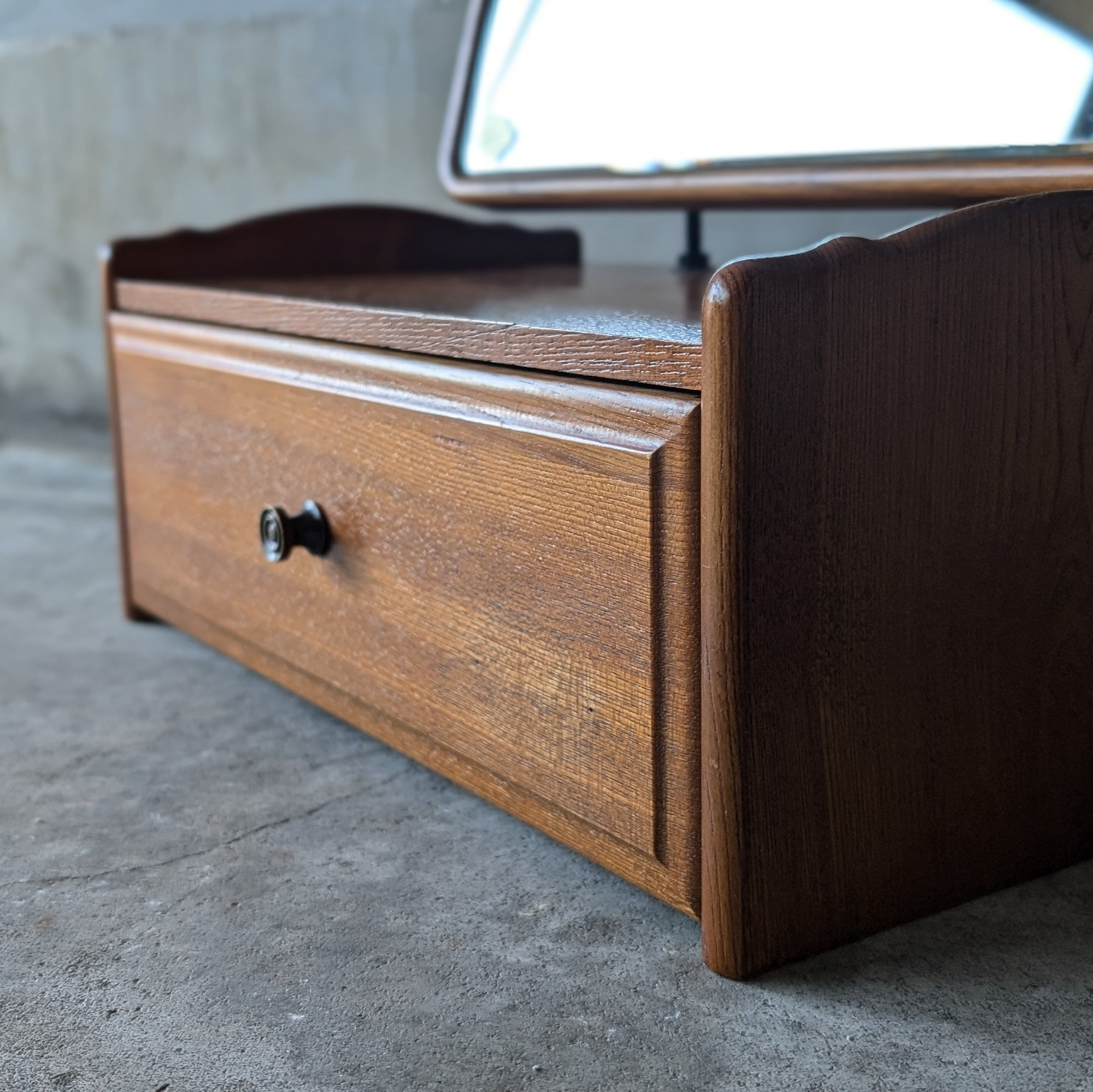 平成期に作られたハーフムーン型の鏡が可愛い卓上の小さなドレッサーです。