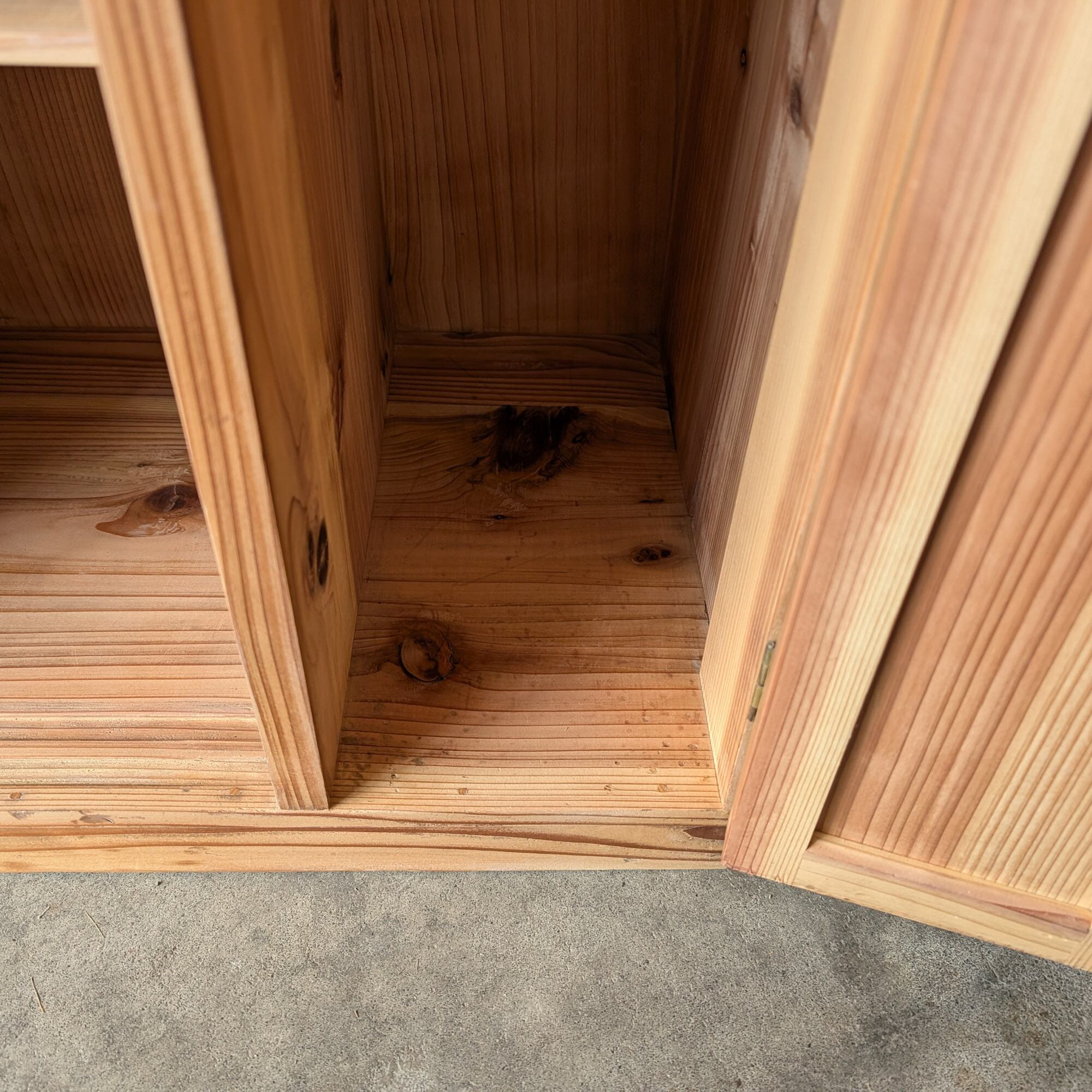 下足箱として作られた物と思いますが、内部を綺麗に掃除およびヤスリ掛けをしていますのでキャビネットとしてお使いになれます。